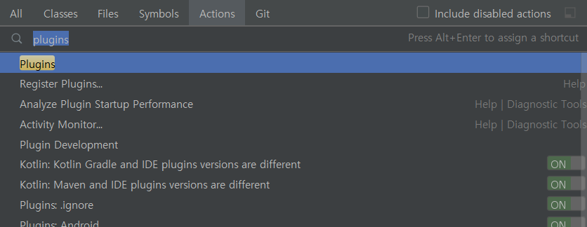 그리고 Ctrl + Shift + A [MAC은 COmmand + SHIFT + A]를 통해 Plugins를 설치해주세요.