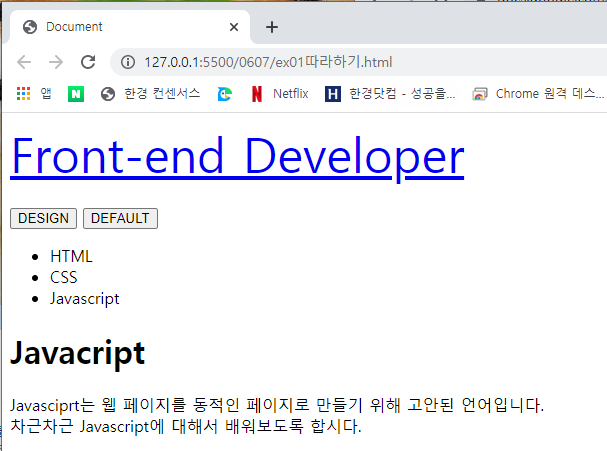 Front-end Developer는 색깔로 봤을때 하이퍼텍스트임을 확인하실 수 있습니다.
