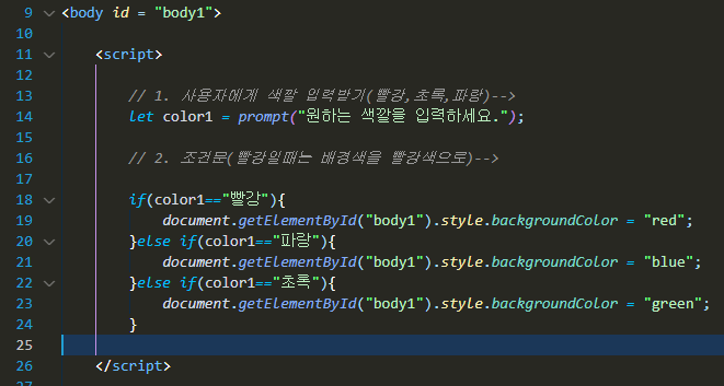문제2. 사용자가 색을 입력하면 출력해라(빨강, 파랑, 초록)