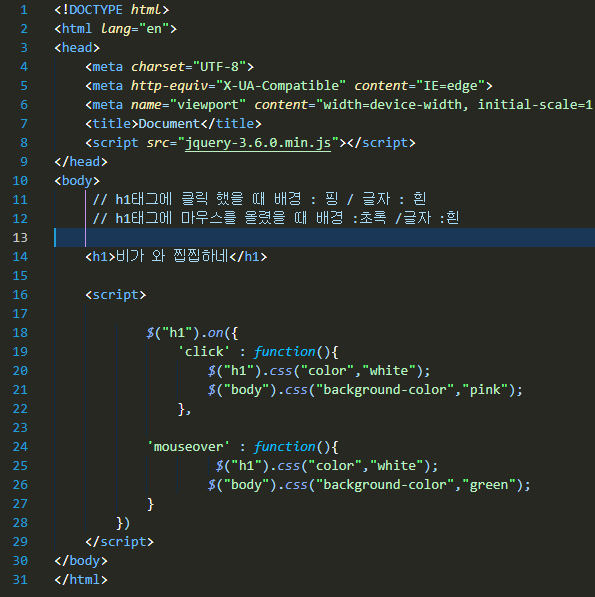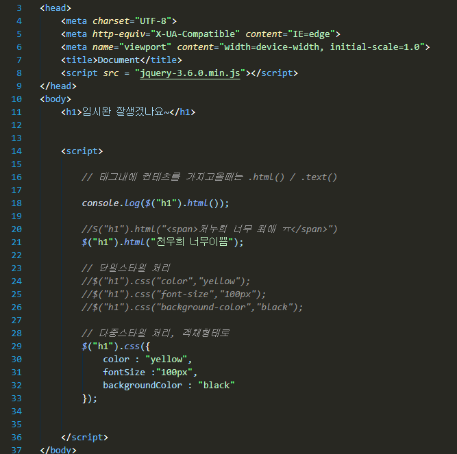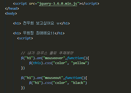 원래는 <h1>이 아래에 있으면 인터프리터(interpreter) 언어상 적용이 안된다. 왜냐하면 위부터 적용을 하기 때문에, 그러나 다음과 같은 코드를 넣게되면 준비가 되면 넣기떄문에 이또한 코드적용이 된다.