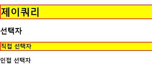 - 인접 관계 선택자는 직접 선택자로 요소를 먼저 선택후, 그 다음 선택한 요소와 가까이에 있는 요소 선택할때 사용