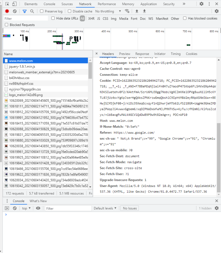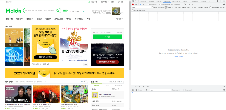 먼저 , melon 홈페이지에 들어가서 F12번 눌러줘요