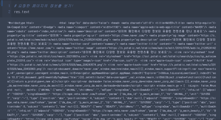 이처럼 Response [200] 이뜨면 정상적으로 페이지를 잘 받아왔다는 것을 의미합니다.