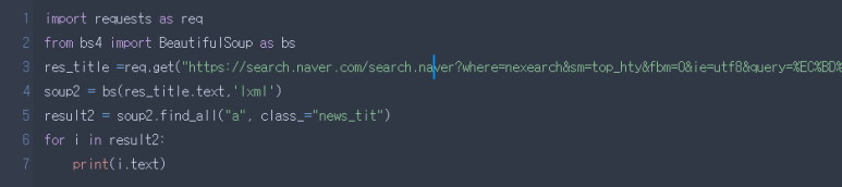 2) bs의 형식은 bs(어떤 데이터를 처리할 것인지, 어떻게처리할것인지('lxml')으로 구성되어있습니다.