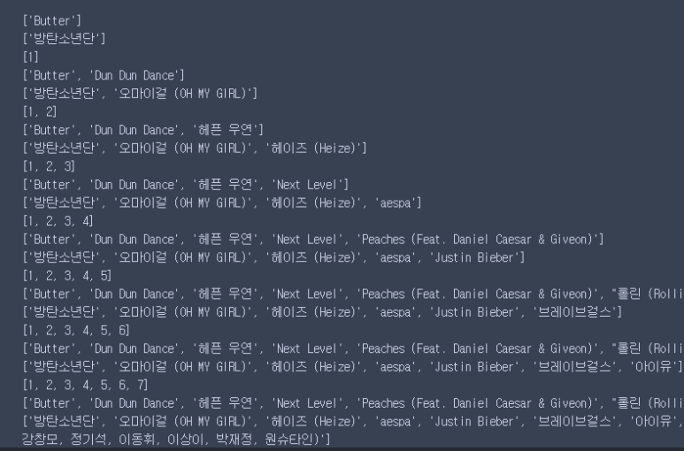 3-1) len을 통해 가수, 노래 100개 확인하기 -ㅣen()