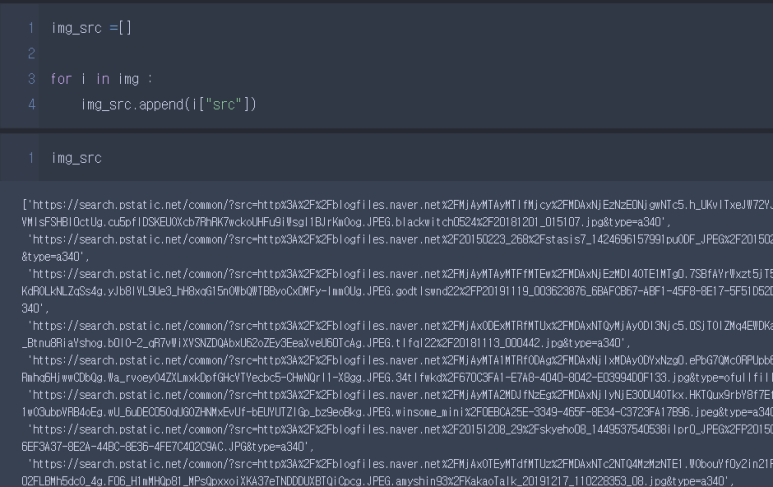 우리가 가져오고 싶은 것은 text가 아니라 img정보이기에 'src'정보만 끌어와야합니다.