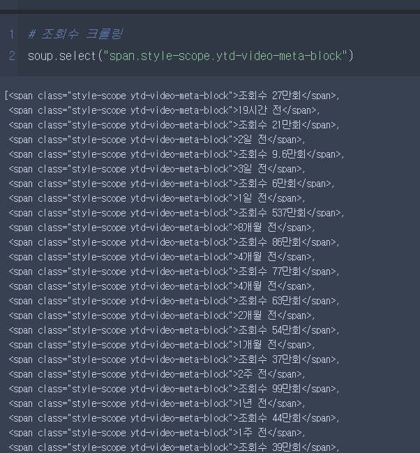 조회수만 가져오고 싶은데 영상올린 년도도뜨네요