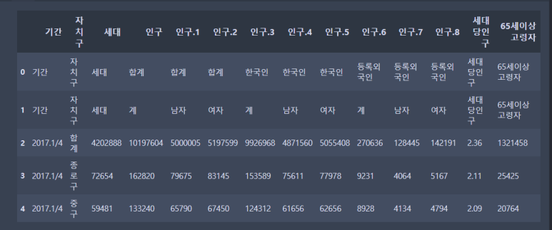 seoul_population = pd.read_excel('population_in_Seoul.xls',