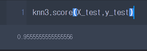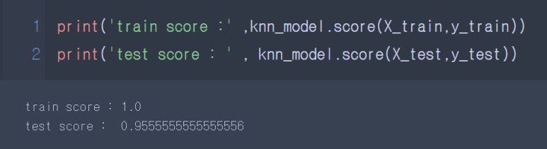 model2 = KNeighborsClassifier(n_neighbors=k) model2.fit(X_train,y_train) #학습 = 훈련