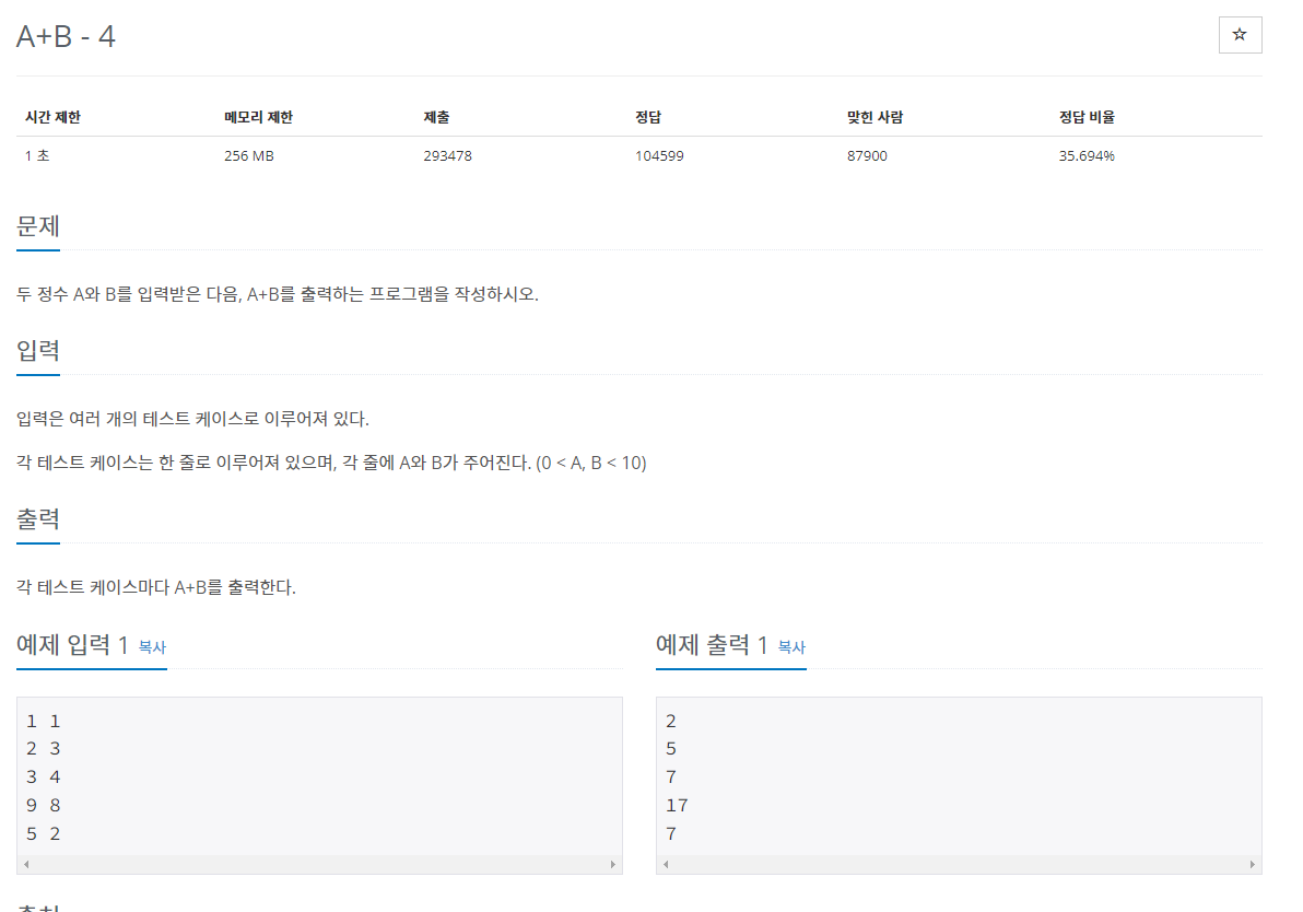 이 번 문제의 키 포인트는 문제를 자세히 보면 몇 개를 입력받는지 알 수 없다는 점이며, 이렇게 주어진 입력 파일만 갖고 입력을 받을 때 더이상 읽을 수 있는 데이터가 없는 경우 이를 EOF(End Of File) 이라고 한다