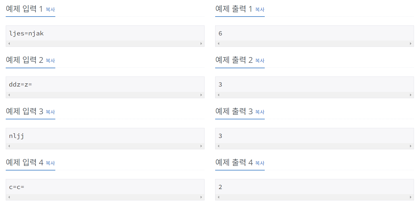 입력으로 주어진 단어가 몇 개의 크로아티아 알파벳으로 이루어져 있는지 출력한다.