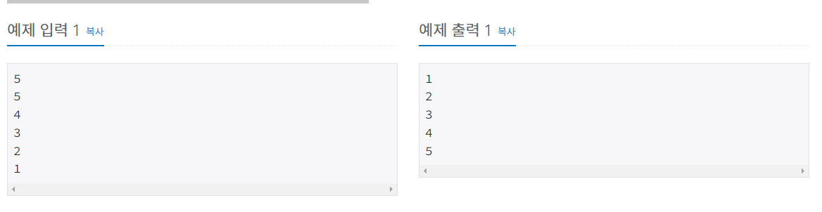 N개의 수가 주어졌을 때, 이를 오름차순으로 정렬하는 프로그램을 작성하시오.